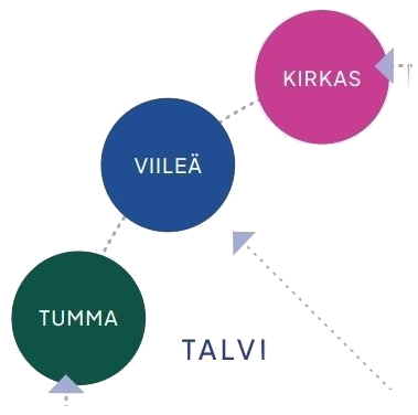 Talven värivuodenaika on täynnä tummia, viileitä,kontrastisia ja selkeitä värejä. Talvi on vuodenaika, jossa värit ovat usein tummanvihreää, tummansinisiä, ja lämpimän punaisia. Talven sävyt korostavat kylmyyttä ja selkeyttä.Hopea ja platinanvärit ovat parhaita metallisävyjä